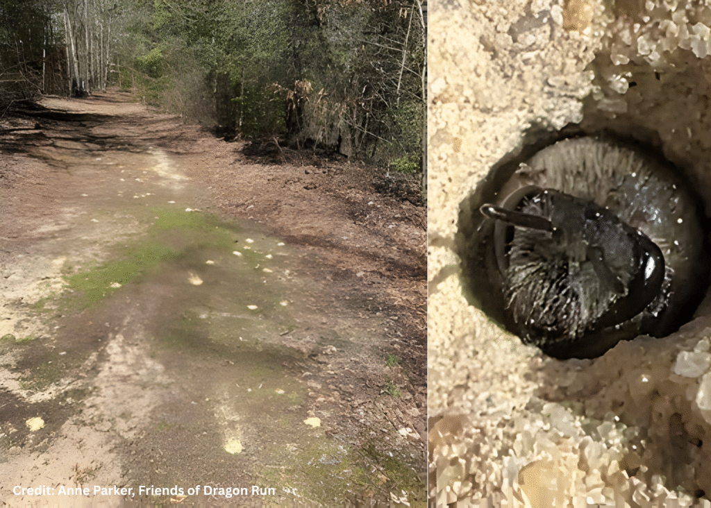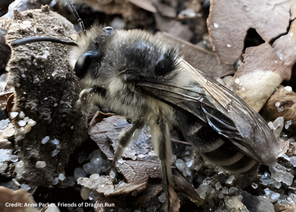 One of the quiet signs of early spring in Virginia’s River Realm, cellophane bees emerge as temperatures warm and wildflowers begin to bloom. These solitary, native bees are important pollinators of early spring flowers, often appearing in small groups as they nest in sandy soil along trails, banks, and open ground.