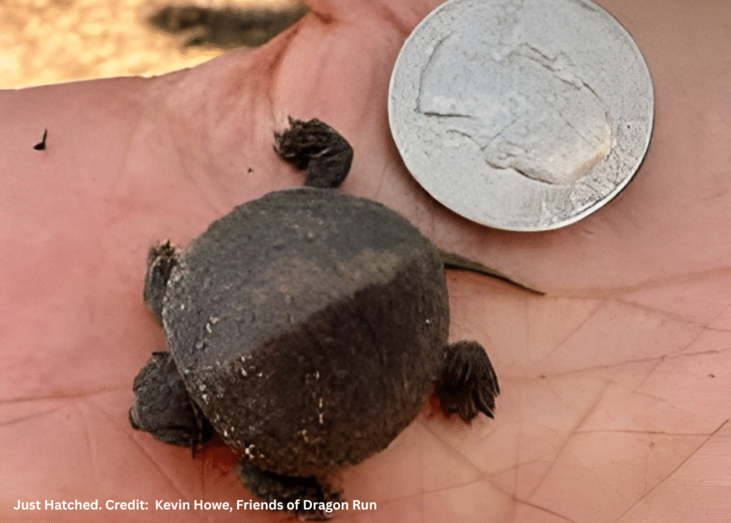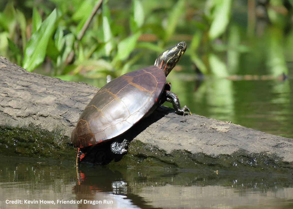 Eastern Painted Turtles prefer calm freshwater habitats such as ponds, wetlands, and slow backwaters with plenty of logs and rocks for basking. Look for them sunning themselves on exposed logs or along muddy banks on warm spring days. Freshwater swamps and low-salinity tidal creeks—like those found along the Dragon Run—offer some of the best opportunities to spot them.