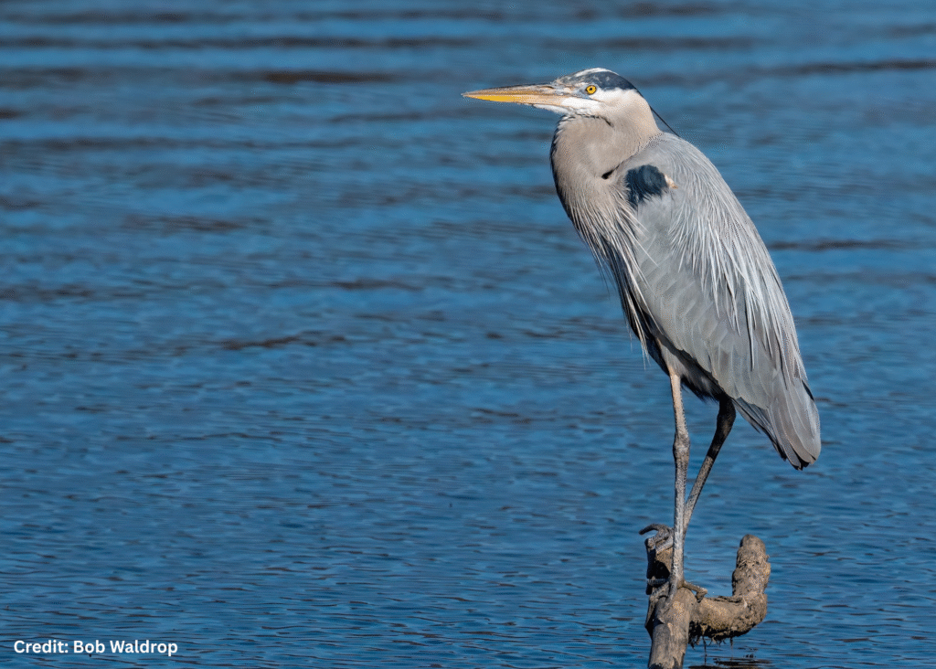 A year-round resident of Virginia’s River Realm, the Great Blue Heron becomes especially active and visible in spring as shallow waters warm and feeding opportunities increase. With its towering height and slow, deliberate movements along shorelines and wetlands, this iconic wading bird is one of the most reliable wildlife sightings for visitors exploring the region in early spring.