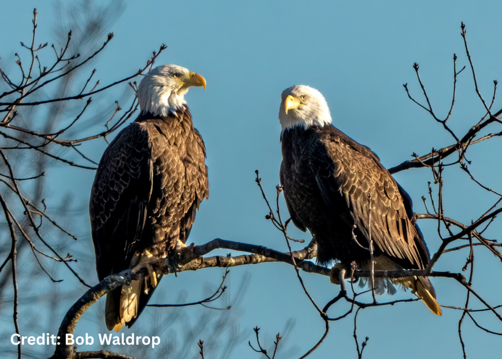 Bald Eagles can be seen year-round in the region, but late winter through early spring (January–March) is an especially active time. During this period, many pairs are nesting, incubating eggs, or caring for young, making them easier to observe as they frequently travel between nest sites and nearby waters to hunt.