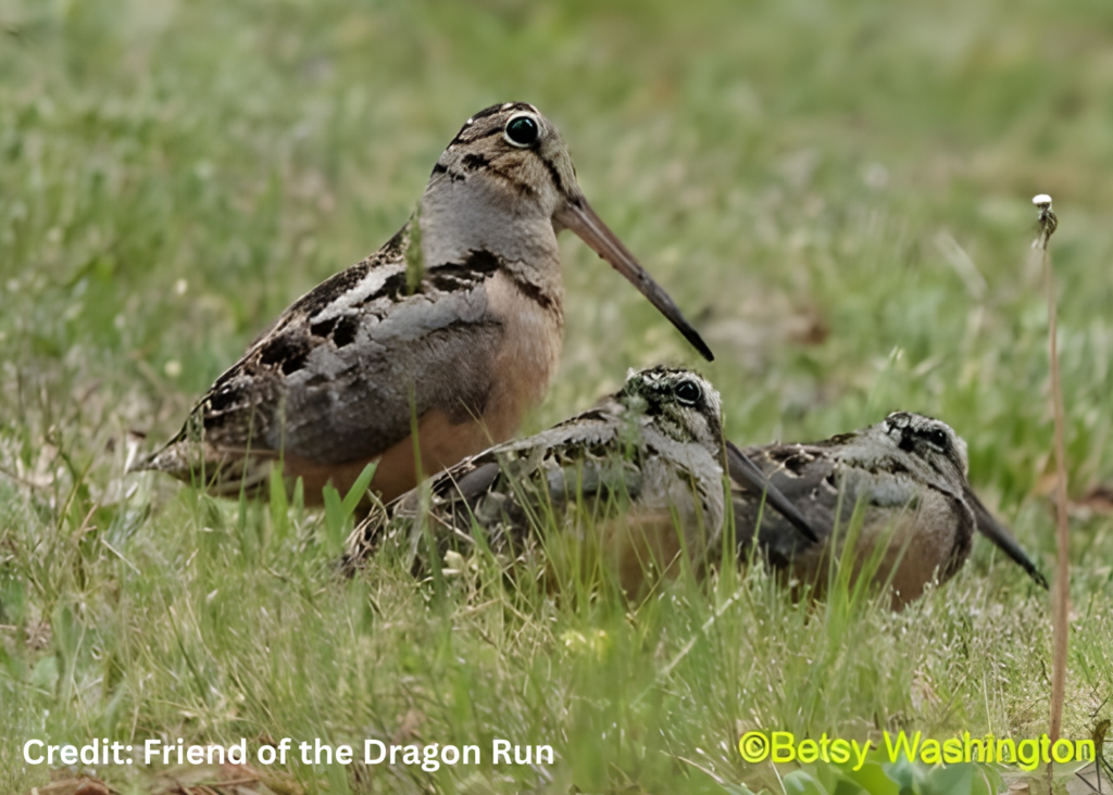 American Woodcocks favor young forests, brushy fields, woodland edges, and regenerating clearings near moist forest soils where they can forage for earthworms. Listen for their calls in open clearings, early successional forests, and field edges near wooded wetlands or streams throughout Virginia’s River Realm.
