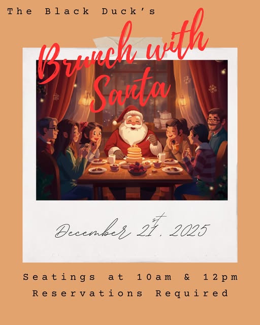 Brunch w/ the jolly dude at THE BLACK DUCK / Yankee Point Marina ... December 21st at 10AM or 12PM. Reservations are made by email for this event... Andrea@yankeepointmarina.com.