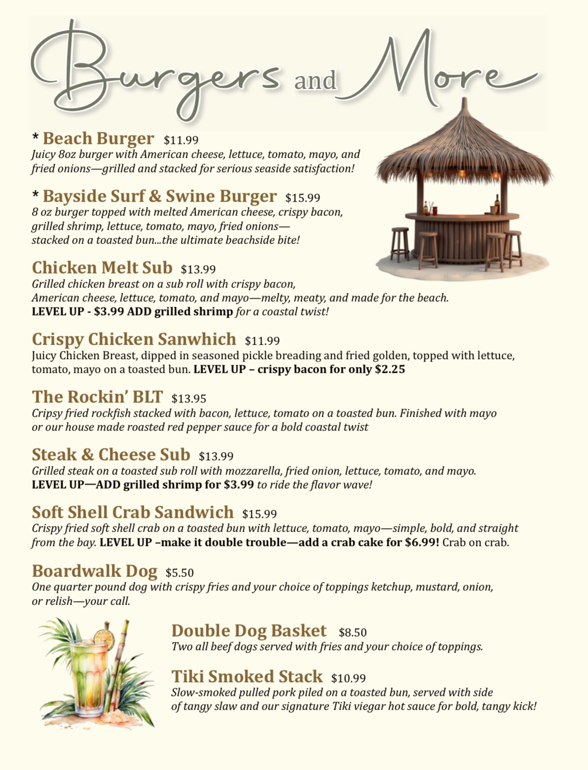 Seasonal Casual Waterfront Dining outdoors with expansive views of the Rappahannock River. Come by boat or by car. Provides musical entertainment on select weekends during the summer months.