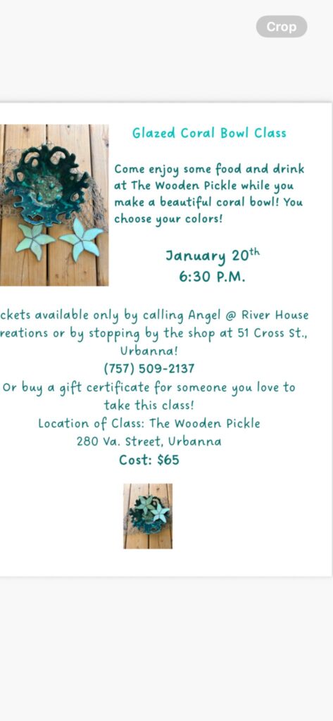 Come enjoy some food and drink at The Wooden Pickle while you make a beautiful coral bowl on January 20th at 6:30PM. You choose your colors! Tickets available only by […]