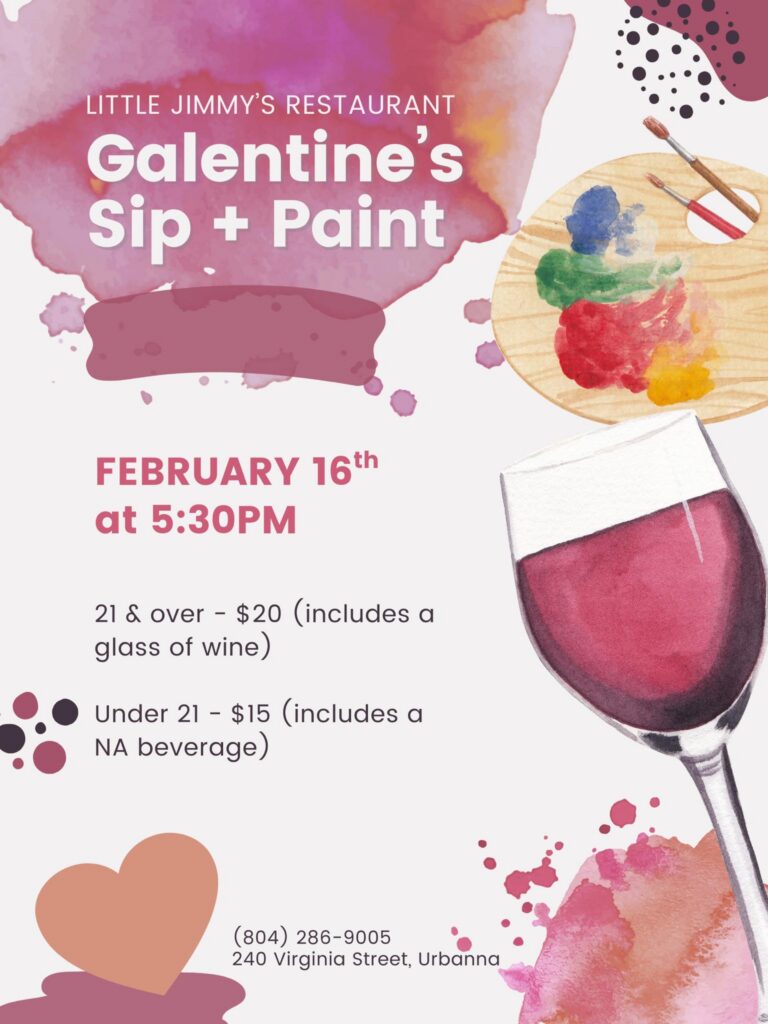 Grab your girls and join us for a Galentine’s Sip & Paint on February 16th at 5:30PM. Everything you need to create the perfect Valentine’s Day canvas is included – […]