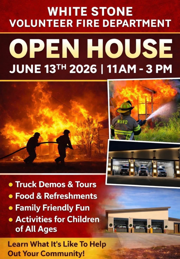 White Stone Volunteer Fire Department Open House Come join us for a fun, family-friendly day at the White Stone Volunteer Fire Department! Saturday, June 13th, 2026� 11:00 AM – 3:00 PM […]